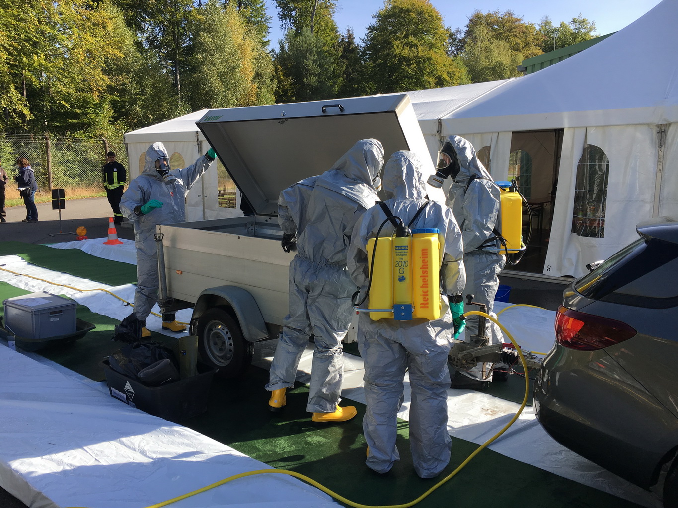 Nach dem Abladen des Kadavers am Sammelplatz muss sowohl das Bergefahrzeug als auch der Anhänger in einer Desinfektionsschleuse dekontaminiert werden. Die örtlichen Feuerwehren, der Katastrophenschutz und das Technische Hilfswerk sollten im Seuchenfall Amtshilfe leisten, Schleusen einrichten und die Bergefahrzeuge sowie das Transportfahrzeug der Tierkörperbeseitigungsanlage desinfizieren. Bei der Desinfektion  werde das Produkt „Venno Vet 1 super“ in 2 %iger Lösung eingesetzt. Die Einwirkzeit beträgt 30 Minuten.