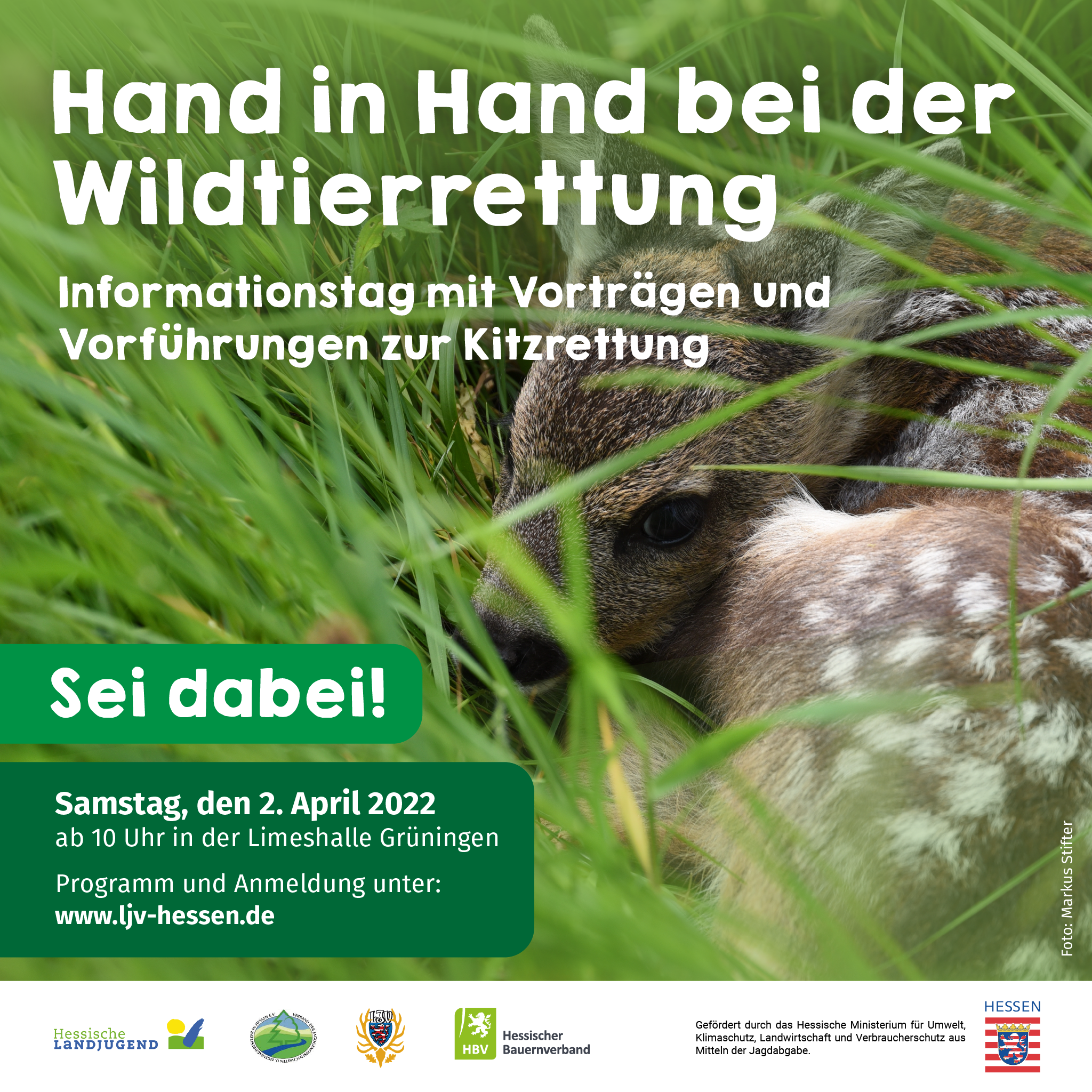 Am Samstag den 2. April 2022 von ca. 9:30–16:00 Uhr in der Limeshalle Grüningen. Für alle Landwirte/Landwirtinnen, Jäger/Jägerinnen sowie weitere Interessierte aus dem Bereich des Tier- und Naturschutzes.