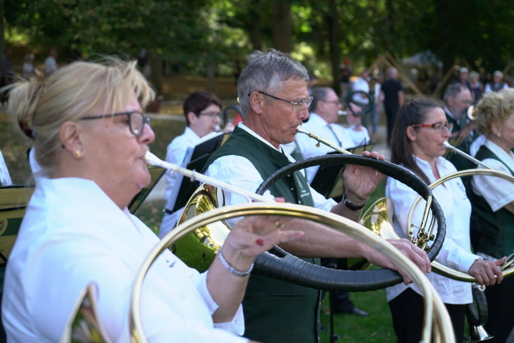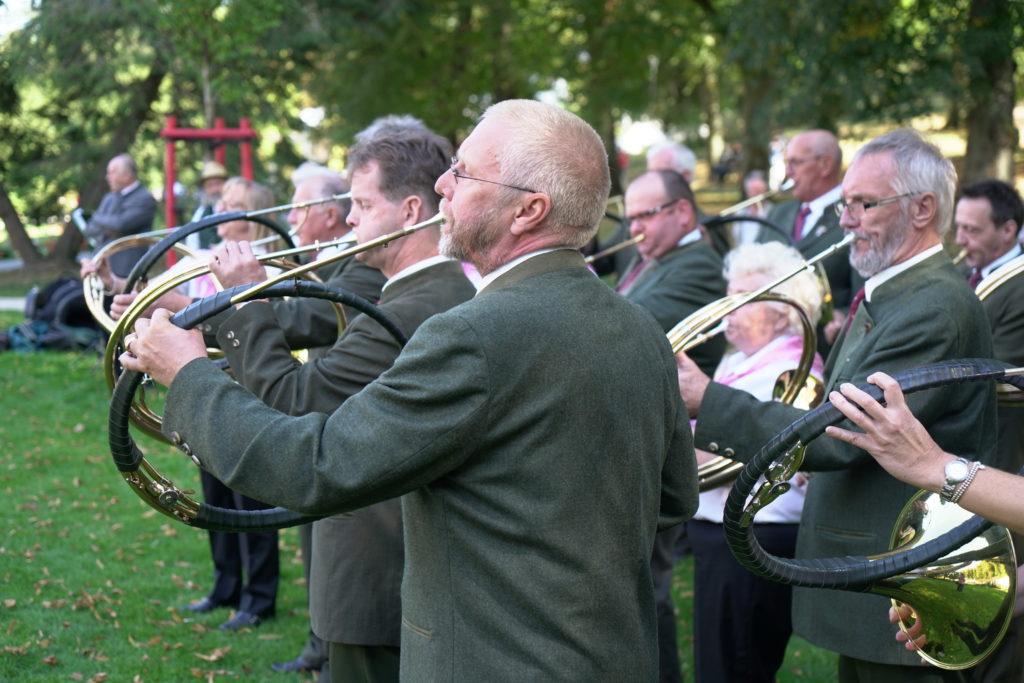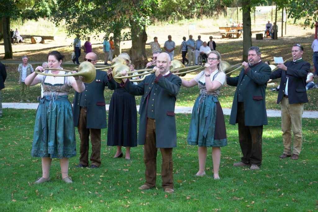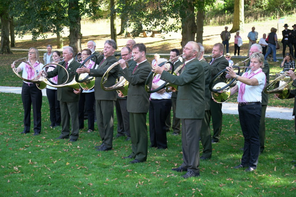 Schon am Eingang der Landesgartenschau waren die Jagdhornklänge zu hören. Die Besucher waren sehr beeindruckt vom Hörnerklang und haben rund um die Aktionswiese teilweise auf dem Boden Platz genommen, um die jagdliche Musik zu genießen. Neben klassischen Jagdsignalen wie „Begrüßung zur Jagd“, „Damwild tot“ und „Wisent tot“, wurden auch bekannte Stücke wie „Auf zum fröhlichen Jagen“ und „Der Jäger aus Kurpfalz“ präsentiert.