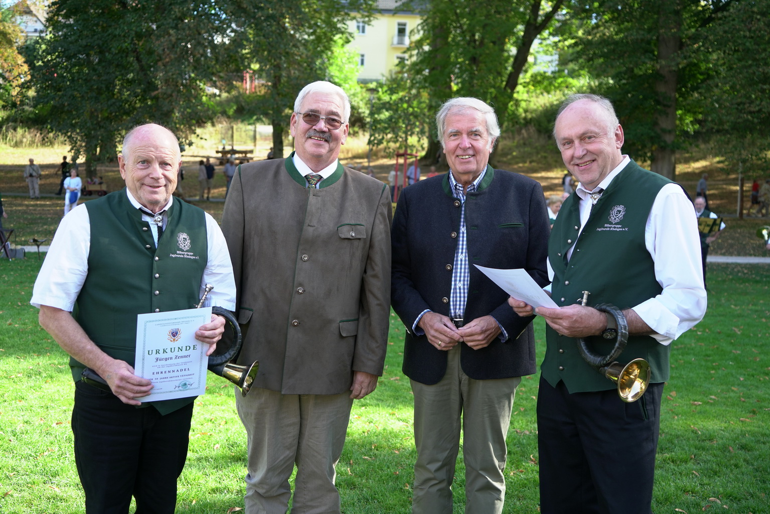 Wie der Landrat des Rheingau-Taunus-Kreises, Frank Killian, in seinem Vorwort erläuterte, sei es für jüngeren Generationen kaum vorstellbar ohne Funkgeräte und Mobiltelefone über eine größere Distanz zu kommunizieren. Bei der Jagd habe diese Verständigung mit Jagdhörnern stets funktioniert und dieses Brauchtum habe sich bis heute erhalten. Er freute sich, dass es anlässlich des 50-jährigen Jubiläums der Jagdhornbläsergruppe des Jagdvereins Rheingau e. V. gelungen ist, dieses große Bläsertreffen in Hessen zu organisieren. Er dankte dem Organisator und Bläserobmann des Jagdvereins Rheingau, Herrn Jürgen Wiedenhöfer, für sein unermüdliches Engagement.