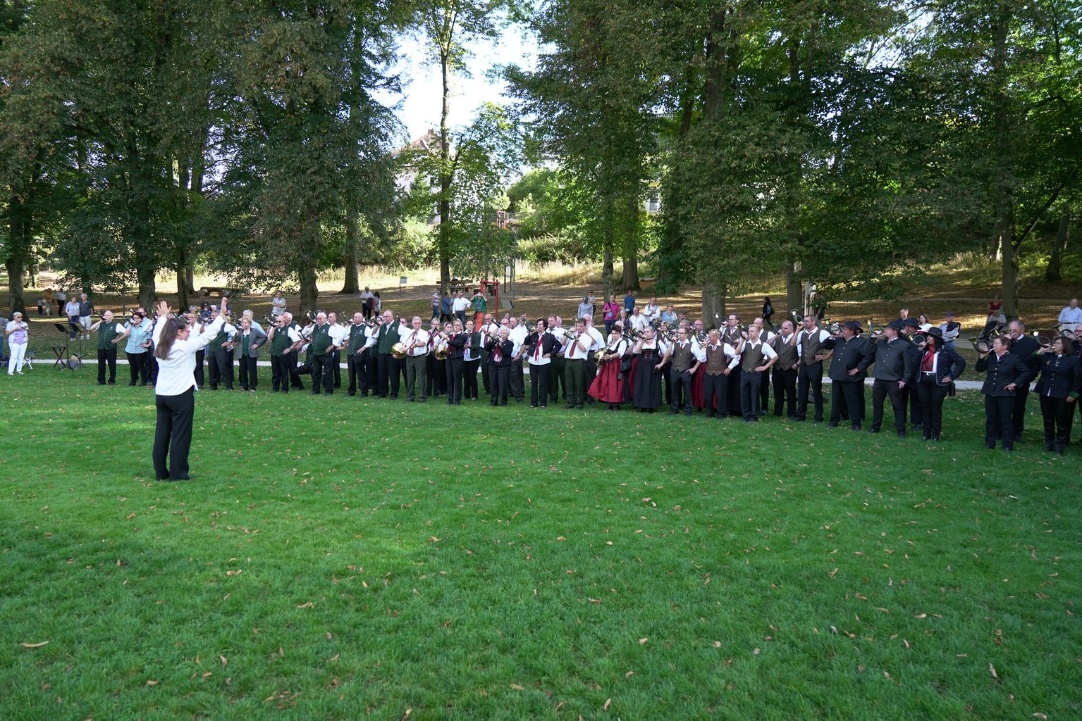 Schon am Eingang der Landesgartenschau waren die Jagdhornklänge zu hören. Die Besucher waren sehr beeindruckt vom Hörnerklang und haben rund um die Aktionswiese teilweise auf dem Boden Platz genommen, um die jagdliche Musik zu genießen. Neben klassischen Jagdsignalen wie „Begrüßung zur Jagd“, „Damwild tot“ und „Wisent tot“, wurden auch bekannte Stücke wie „Auf zum fröhlichen Jagen“ und „Der Jäger aus Kurpfalz“ präsentiert.