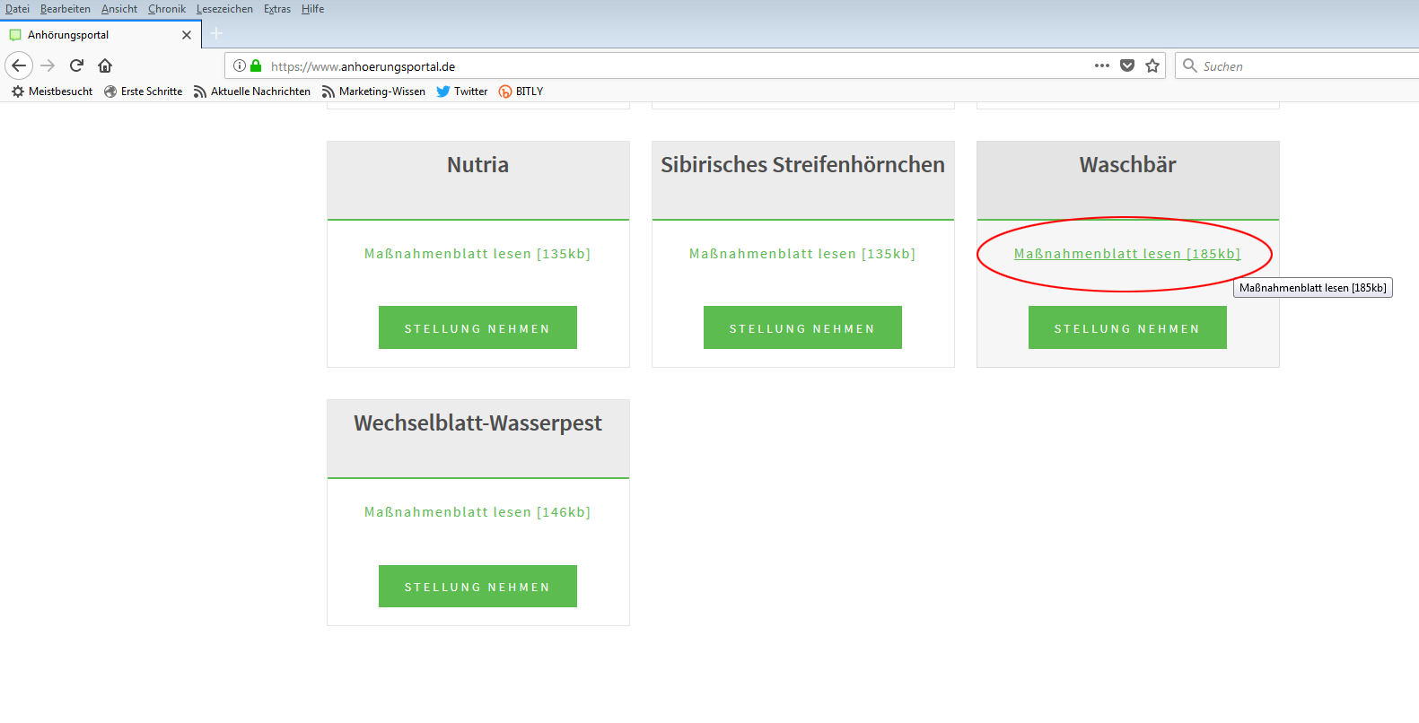 2. Gehen Sie auf der Webseite ganz nach unten zu den einzeln aufgelisteten invasiven Arten und lesen die Managementplan-Entwürfe: