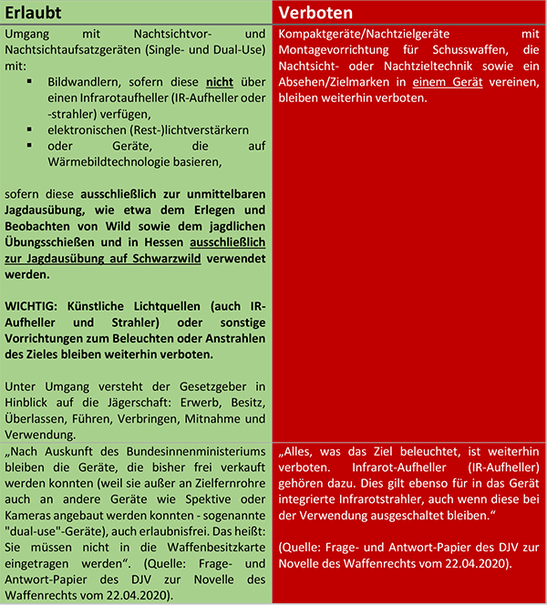 Nach unserem gestrigen Newsletter und dem auf der Homepage erschienenen Artikel „Nachtsichtvor- und Nachtsichtaufsätze – Was ist erlaubt und was bleibt verboten?“ haben uns zahlreiche Anfragen zum Erwerb bzw. zur Verwendung von bestimmten Geräten oder Gerätekombinationen erreicht.