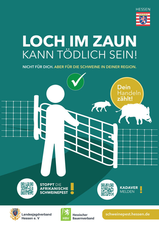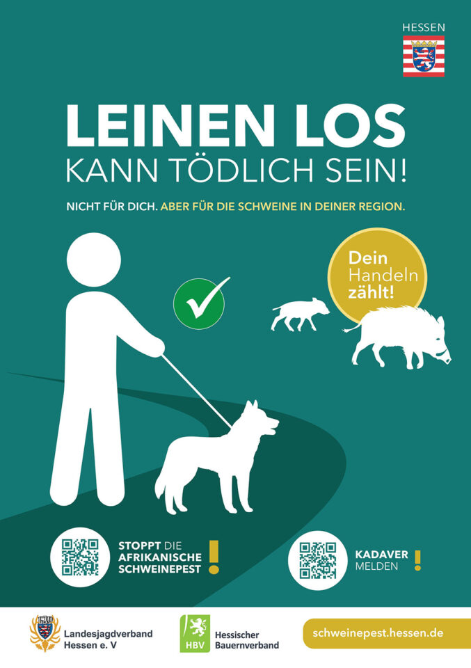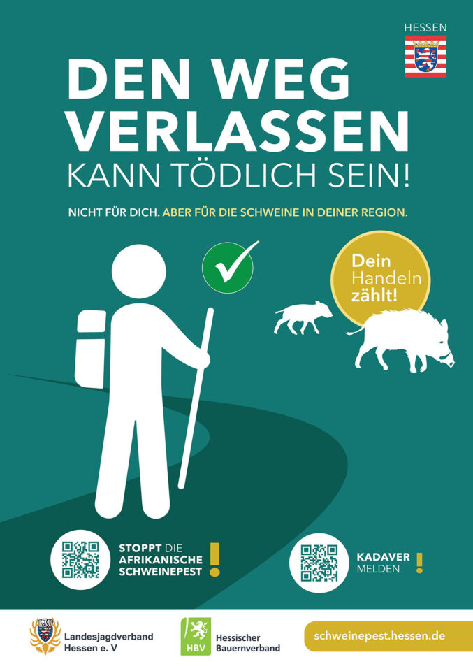Das Land Hessen startet eine Öffentlichkeitskampagne zur Aufklärung über die Afrikanische Schweinepest. Der Landesjagdverband Hessen und der Hessische Bauernverband sind Partner der Aktion und begrüßen die Kampagne.