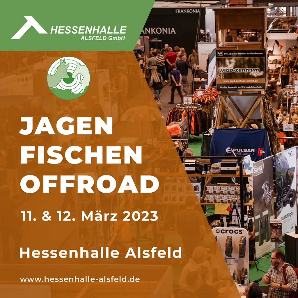 Am Samstag, 11. März und Sonntag, 12. März 2023 öffnet die „JAGEN FISCHEN OFFROAD“ in der Hessenhalle Alsfeld wieder ihre Tore. Vorstand und Mitarbeiter der LJV-Geschäftsstelle freuen sich auf Ihren Besuch an unserem Stand in Halle 2, Stand-Nr. 56.